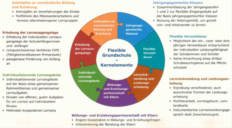 Das Ziel ist es, jedem Kind genau die Zeit zu geben, die es benötigt, um die elementaren Kulturtechniken zu erschließen. Dies kann nun in ein, zwei oder drei Jahren, während der flexiblen Eingangsstufe, geschehen.